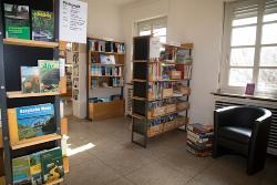 - in einer modernen Bücherei in einem historischen Gebäude